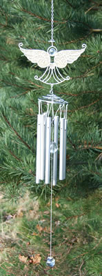 The chime hangs on a length of silver chain with a hook at the top for ease of hanging.