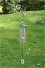 in a V-shape and threaded on peach coloured nylon line, the glass is