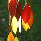 A circular section of natural bamboo supports 21 frosted glass leaves in the warm colours associated with an English beech wood.