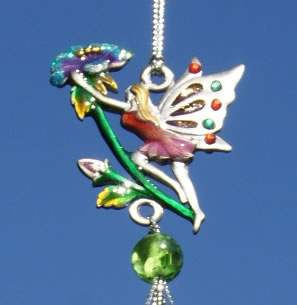 Each of these pretty mini wind chime features a double-sided fairy of silver finish